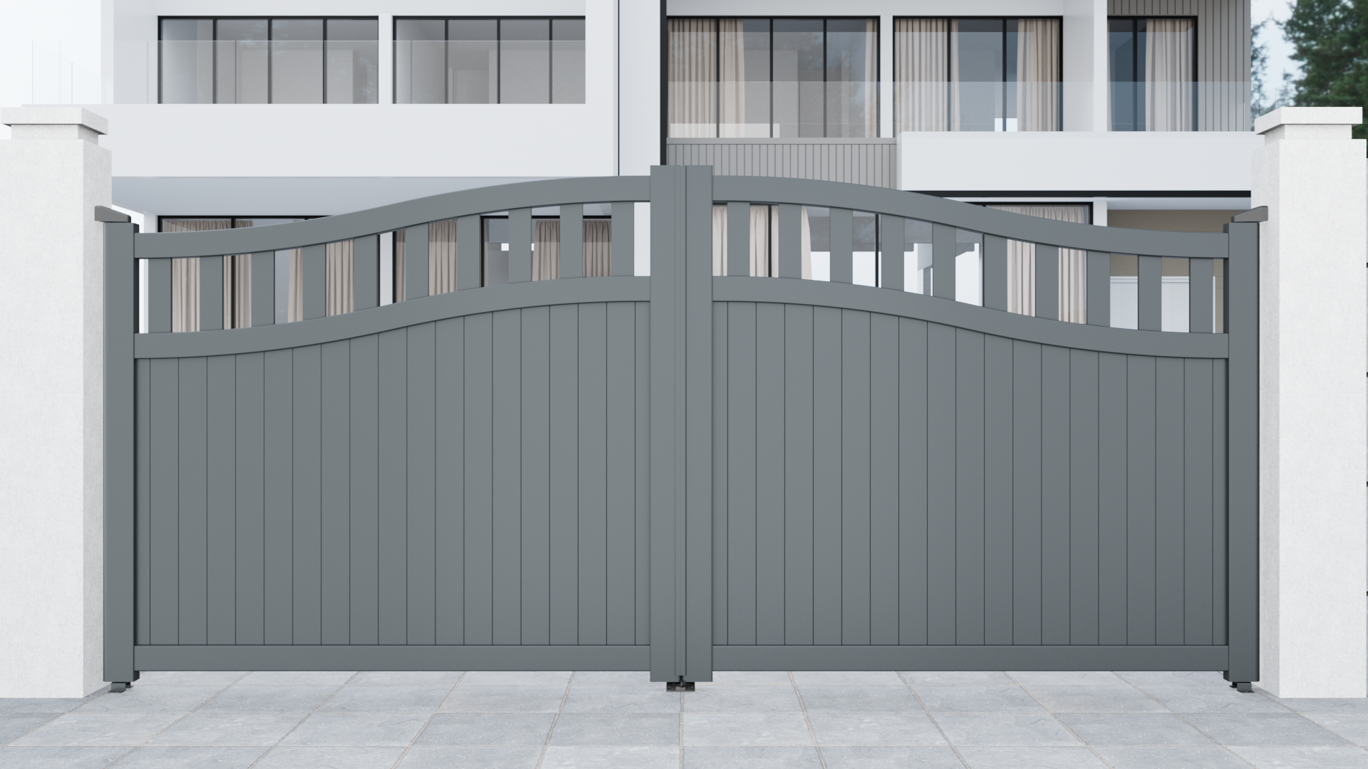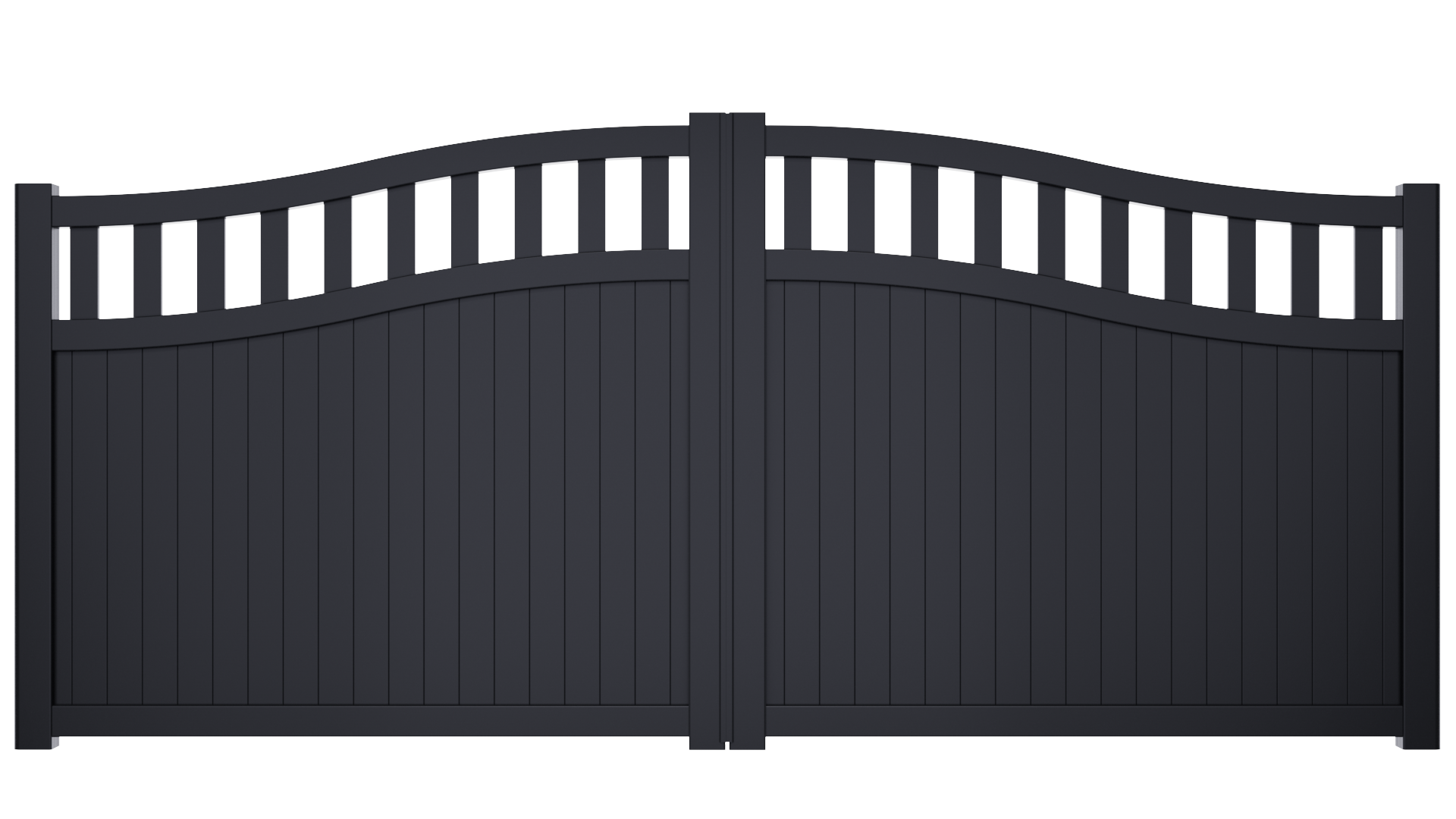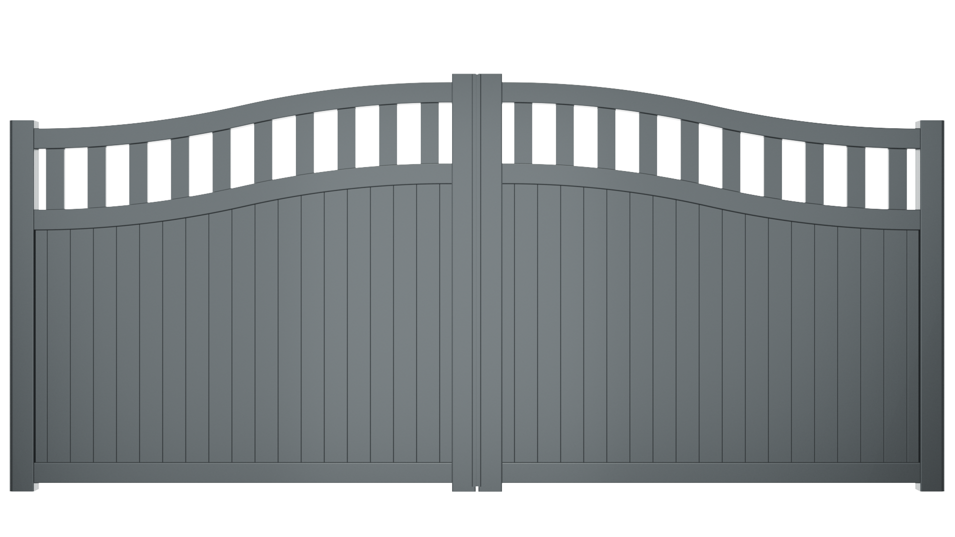Double Swing Gate with Bell Curved Top and Full Vertical Mixed Infill